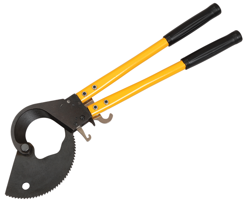 Инструмент для резки кабеля с пластмассовой и бумажной изоляцией изготавливается из инструментальной стали с высокой режущей способностью. Специальная геометрия лезвий позволят осуществлять работу безопасно и быстро. Обладает высокой стабильностью и незначительной массой. Ножницы секторные снабжены храповым механизмом, выдвижными ручками, блокиратором резки. Замок устроен таким образом, что позволяет осуществлять обратный ход лезвия, необходимый в случае попадания в нож посторонних объектов. Чрезвычайно высокая режущая способность инструмента достигается за счёт оптимальной конструкции ножниц и режущих ножей специальной геометрии.