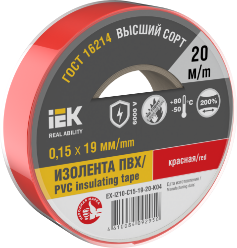 IEK Изолента 0,15х19мм красная 20м