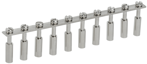 Перемычки (гребенки) используются для электрического соединения рядов клеммных сборок винтового типа (клеммы КВИ) в системах распределения.