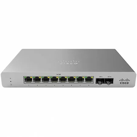Управляемый коммутатор Meraki уровня L2 с 8 гигабитными портами. Поддерживает настольное, настенное и стойковое размещение. Оснащён 256 МБ памяти. Управляется через облачную платформу Meraki.