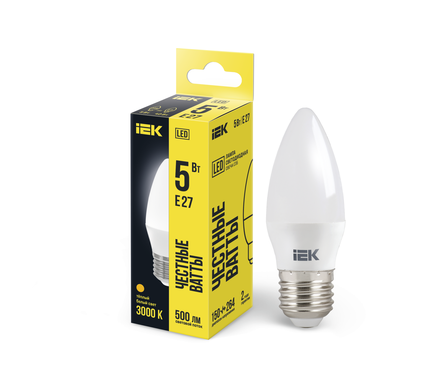 IEK Лампа LED C35 свеча 5Вт 230В 3000К E27
