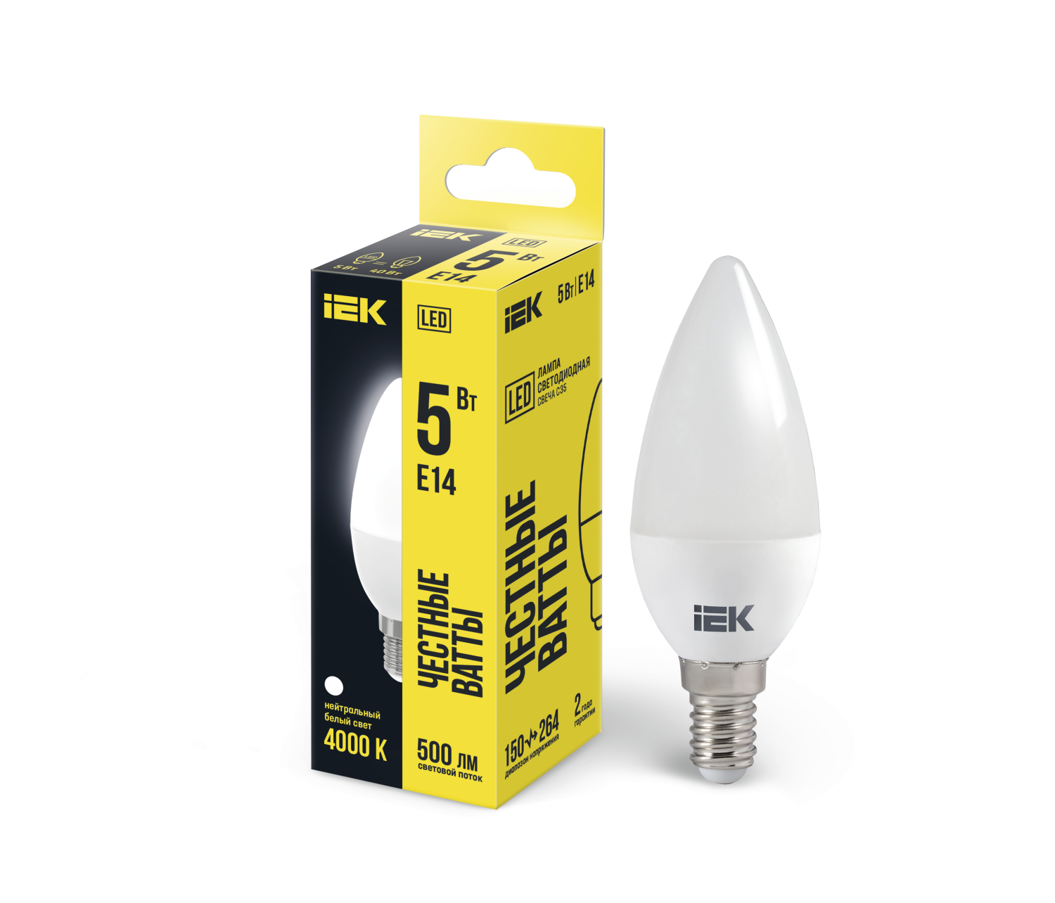 IEK Лампа LED C35 свеча 5Вт 230В 4000К E14