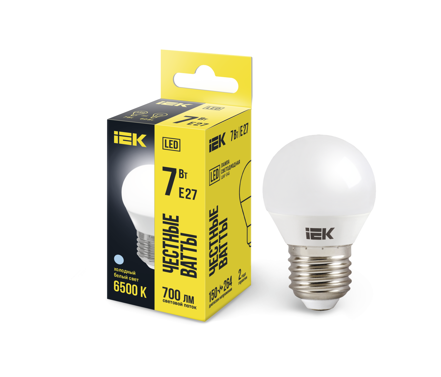IEK Лампа LED G45 шар 7Вт 230В 6500К E27