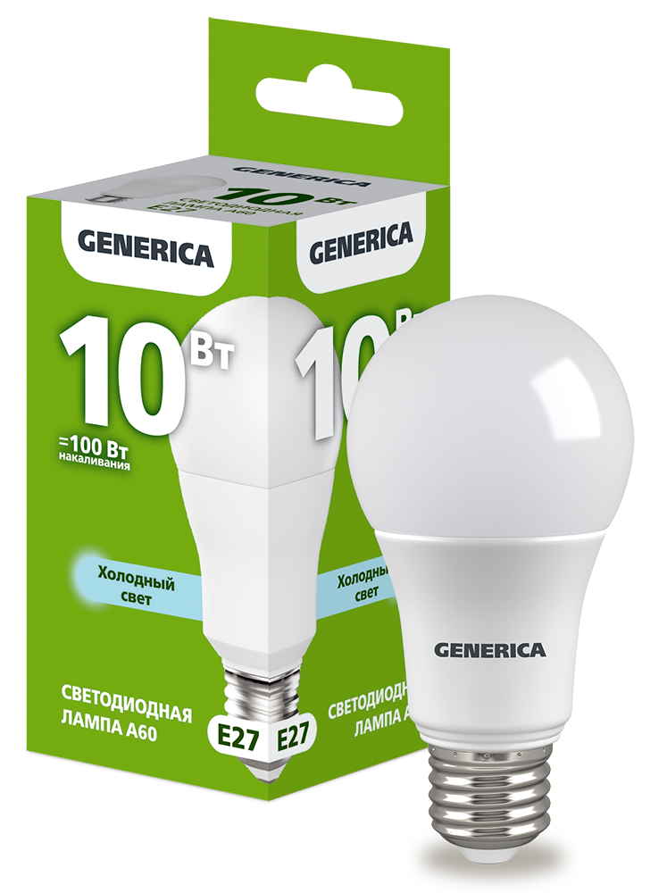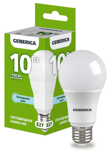 Лампа LED A60 груша 10Вт 230В 6500К E27 GENERICA