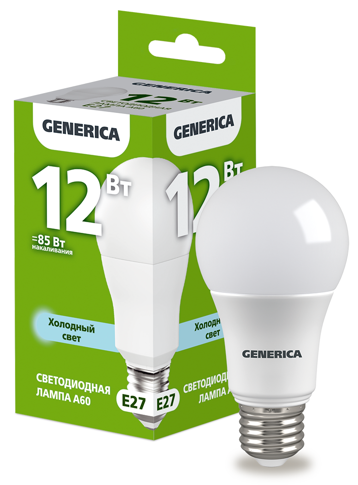 Лампа LED A60 груша 12Вт 230В 6500К E27 GENERICA