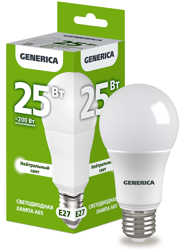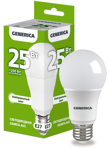 Лампа LED A65 груша 25Вт 230В 4000К E27 GENERICA