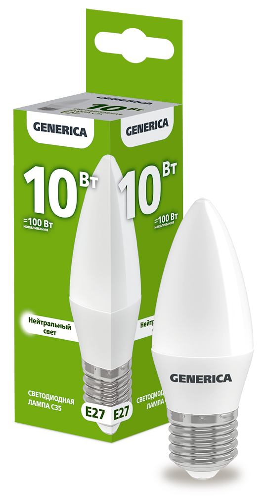 Лампа LED C35 свеча 10Вт 230В 4000К E27 GENERICA