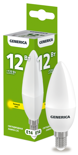 Лампа LED C35 свеча 12Вт 230В 3000К E14 GENERICA