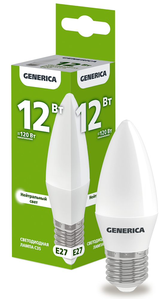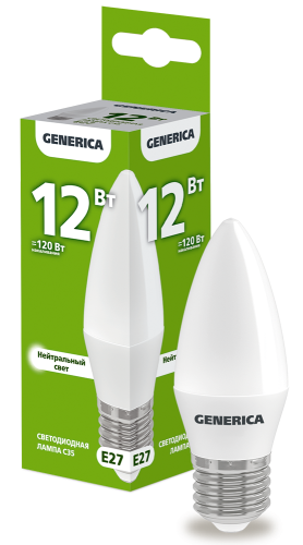 Лампа LED C35 свеча 12Вт 230В 4000К E27 GENERICA