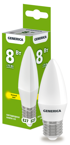 Лампа LED C35 свеча 8Вт 230В 3000К E27 GENERICA