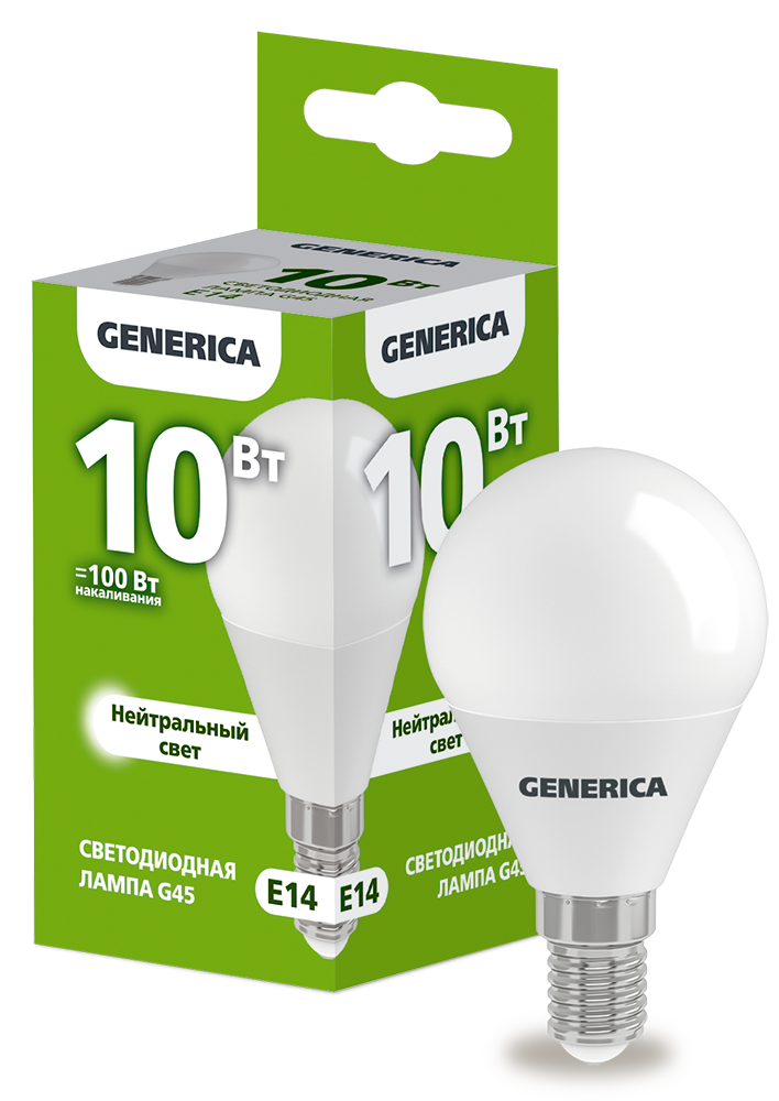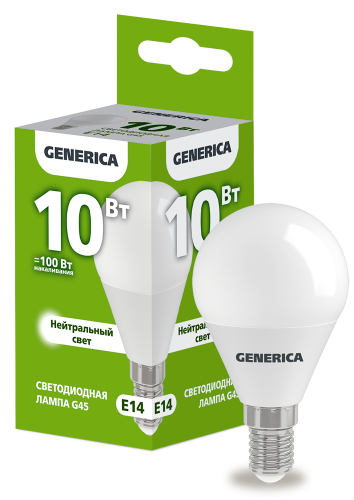 Лампа LED G45 шар 10Вт 230В 4000К E14 GENERICA