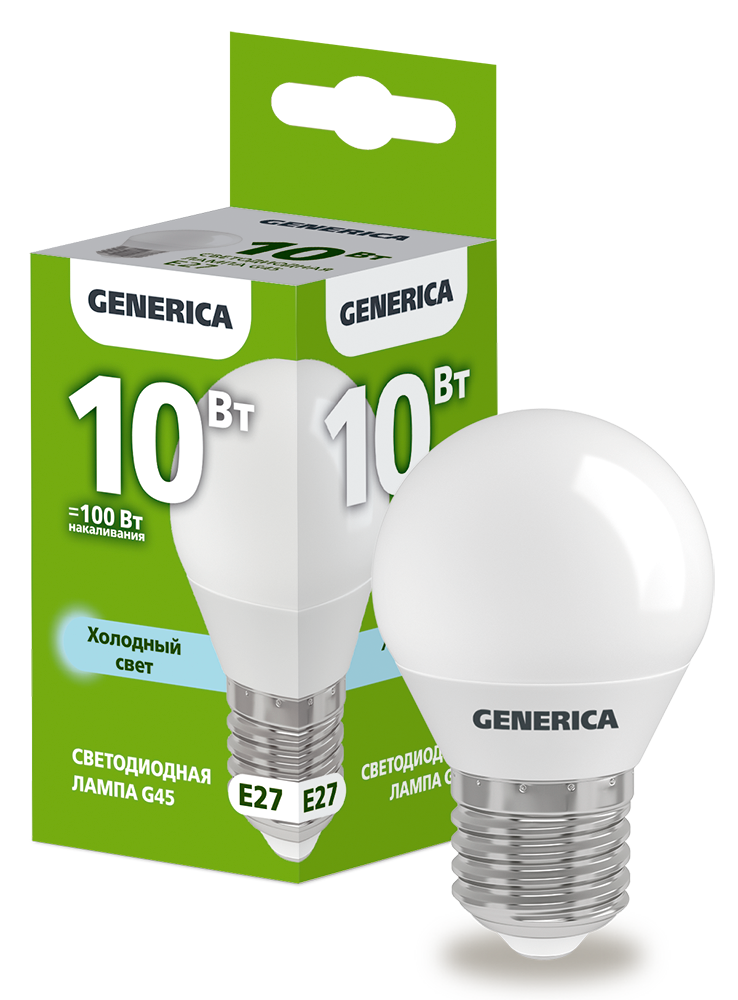 Лампа LED G45 шар 10Вт 230В 6500К E27 GENERICA
