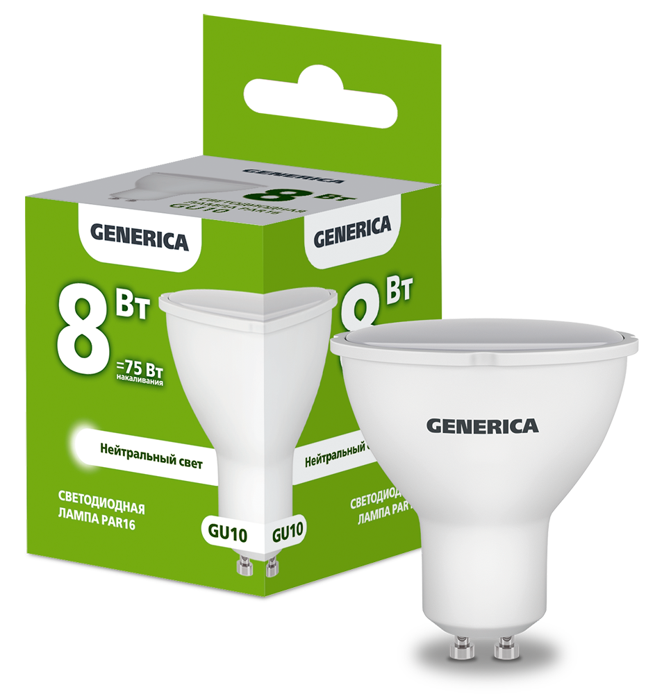 Лампа LED PAR16 софит 8Вт 230В 4000К GU10 GENERICA